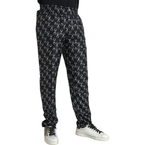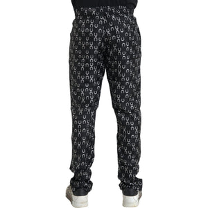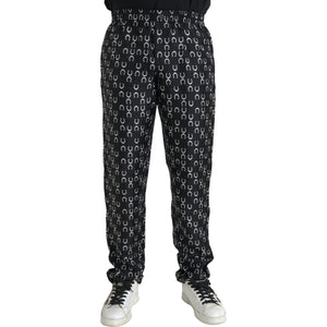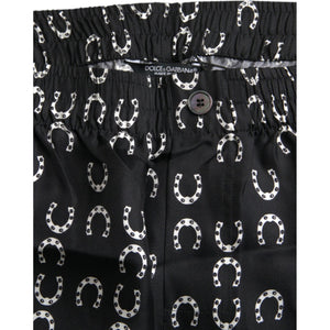 Dolce & Gabbana Black Horseshoe Print Silk Pants