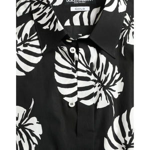 Dolce & Gabbana Black Leaf Cotton Men Formal GOLD Dress Shirt