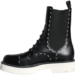 Dolce & Gabbana Black Leather Combat Mid Calf Boots Shoes