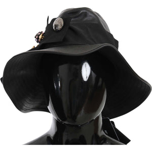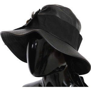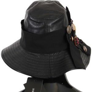 Dolce & Gabbana Black Leather DG Coin Crystal Wide Brim Hat