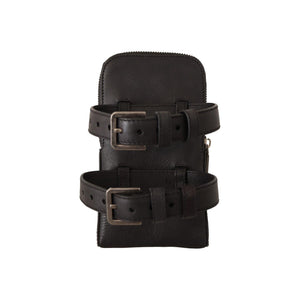 Dolce & Gabbana Black Leather Purse Double Belt Strap Multi Kit Wallet