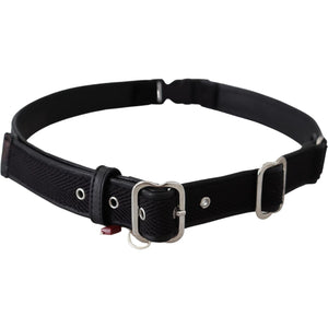 GF Ferre Black Leather Silver Chrome Metal Buckle Belt