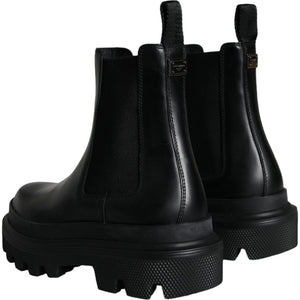Dolce & Gabbana Black Leather Slip On Stretch Trekking Boots Shoes