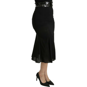 Dolce & Gabbana Black Mermaid High Waist Midi Silk Skirt