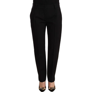 Dolce & Gabbana Black Mid Waist Skinny Trouser Wool Pants