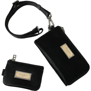 Dolce & Gabbana Black Nylon Logo Plaque Keyring Pouch Clutch Bag