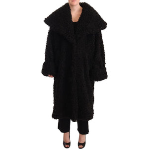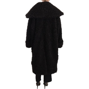 Dolce & Gabbana Black Polyester Fur Trench Coat Jacket JKT3044-36