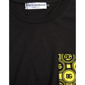 Dolce & Gabbana Black Printed Pocket Cotton Crewneck T-shirt