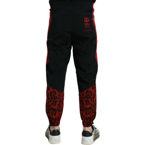 Dolce & Gabbana Black Red Leopard Print Nylon Jogger Pants