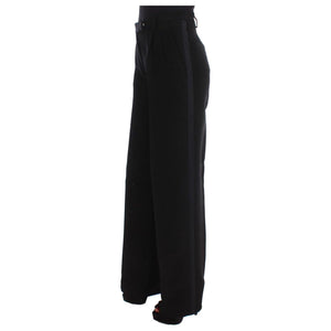 Ermanno Scervino Black Striped Cotton Blend Wide Legs Pants