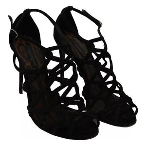 Dolce & Gabbana Black Suede Ankle Strap Stiletto Shoes