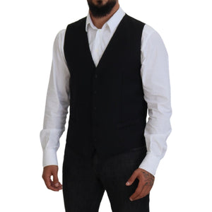 Dolce & Gabbana Black Virgin Wool Waistcoat Formal Vest