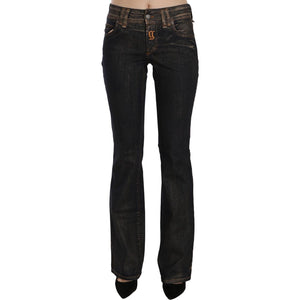 John Galliano Black Washed Mid Waist Flared Denim Pants Cotton