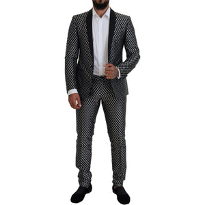 Dolce & Gabbana Black White Silk MARTINI Slim Fit Suit