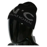 Costume National Black Wool Blend Branded Beanie Hat