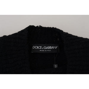 Dolce & Gabbana Black Wool Knit Crewneck Pullover Sweater