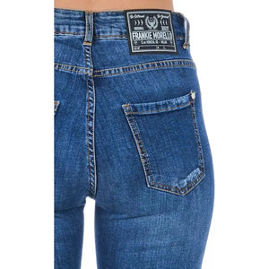 Elevate your denim game with the edgy elegance of Frankie Morello’s meticulously crafted jeans. These are not your average pair; they come with a chic worn wash that exudes a sense of rebellious sophistication. Geared with multi-pocket functionality and a seamless front closure featuring a zip and button, they’re the perfect blend of fashion and practicality. Crafted in Italy, these jeans reflect an urban palette of style in classic blue.