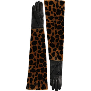 • Dolce & Gabbana Brown Black Leopard Leather Elbow Length Gloves