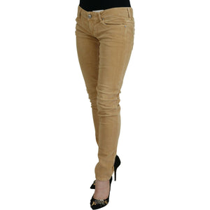 Acht Brown Cotton Corduroy Low Waist Women Casual Jeans