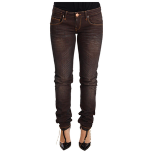 Acht Brown Washed Cotton Slim Fit Denim Low Waist Trouser Jeans
