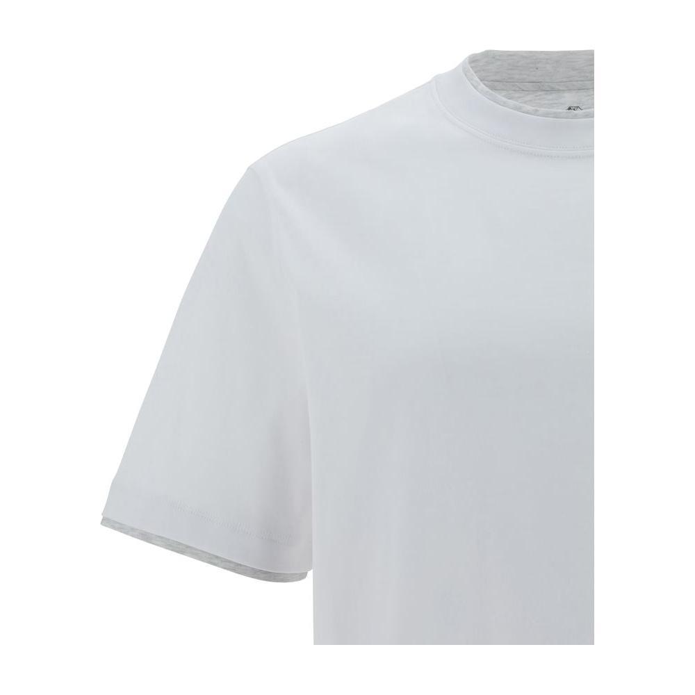 Brunello Cucinelli’s cotton T-Shirt features a refined and versatile design, featuring a two-tone double layer at the hems that adds an interesting visual detail. The monochrome pattern lends a clean, elegant look that is easily paired with a variety of outfits. With a regular fit, this T-shirt offers optimal comfort while maintaining a sophisticated and contemporary look.
