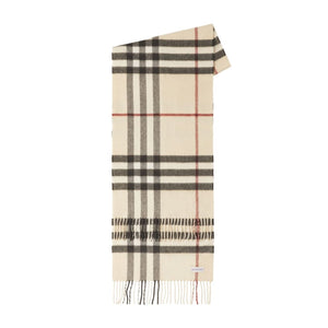 beige multicolour cashmere knitted construction Vintage Check pattern wraparound style frayed hem Giant Check cashmere scarf