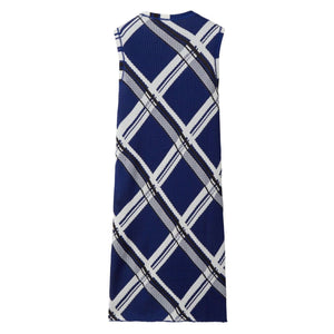 blue silk check print ribbed detailing round neck sleeveless straight hem Check motif silk dress Size and Fit - This piece fits true to size. We recommend you get your regular size. Model is 1,75m / 5ft 8in wearing size S