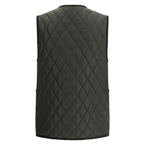 olive green front press-stud fastening two side patch pockets Quilted vest Size and Fit - This piece fits true to size. We recommend you get your regular size. Model is 1,84m / 6ft 1in wearing size M