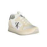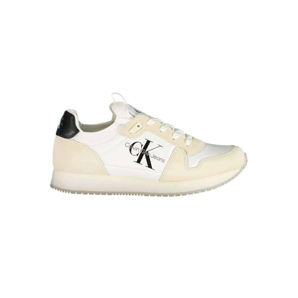 Elevate your sneaker game with the latest from Calvin Klein. These pristine white kicks boast contrasting details that exude modern chic with every step. Crafted for both style and comfort, the removable footbed ensures personalized support, while the iconic Calvin Klein logo adds that luxe finishing touch. Committed to sustainability, they feature a composition with 50% recycled polyester, making them a conscious choice for fashion-forward women. Make a statement with sneakers that blend sporty flair with environmental awareness.