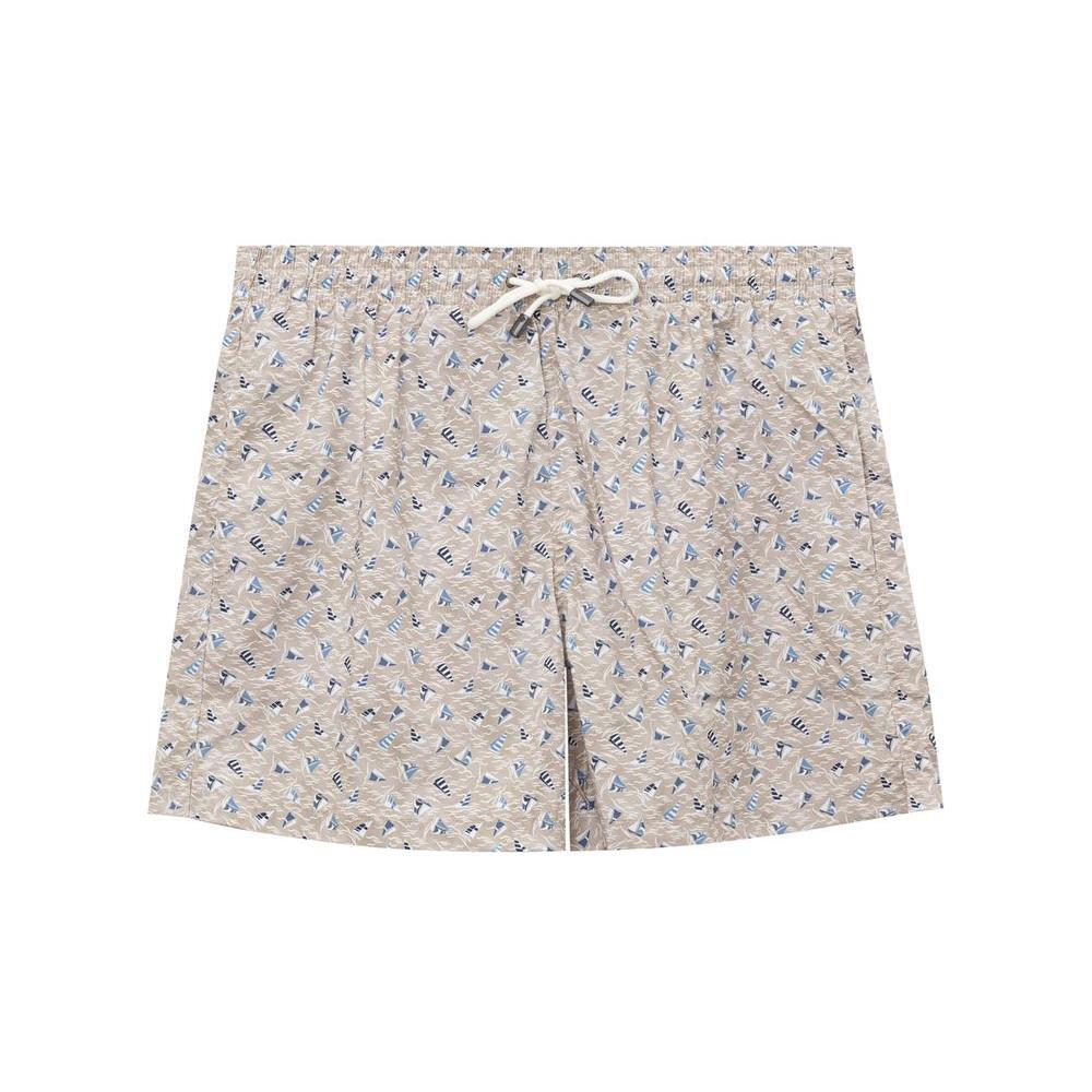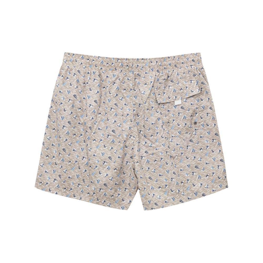 Boxer Swimsuit with Canali Sails Print. In beige with allover print in blue/light blue, elastic waist with adjustable drawstring, two side pockets and one back pocket with flap, internal mesh. Lightweight technical fabric for quick drying.