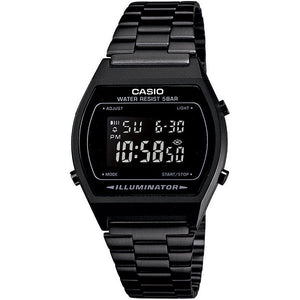 • CASIO VINTAGE Mod. ILLUMINATOR BLACK unisex wristwatch with metal strap and case, quartz movement, multifunction dial, official packaging