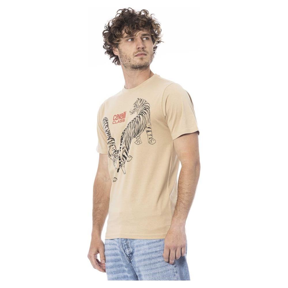 Cavalli Class Beige Cotton Men T-Shirt
