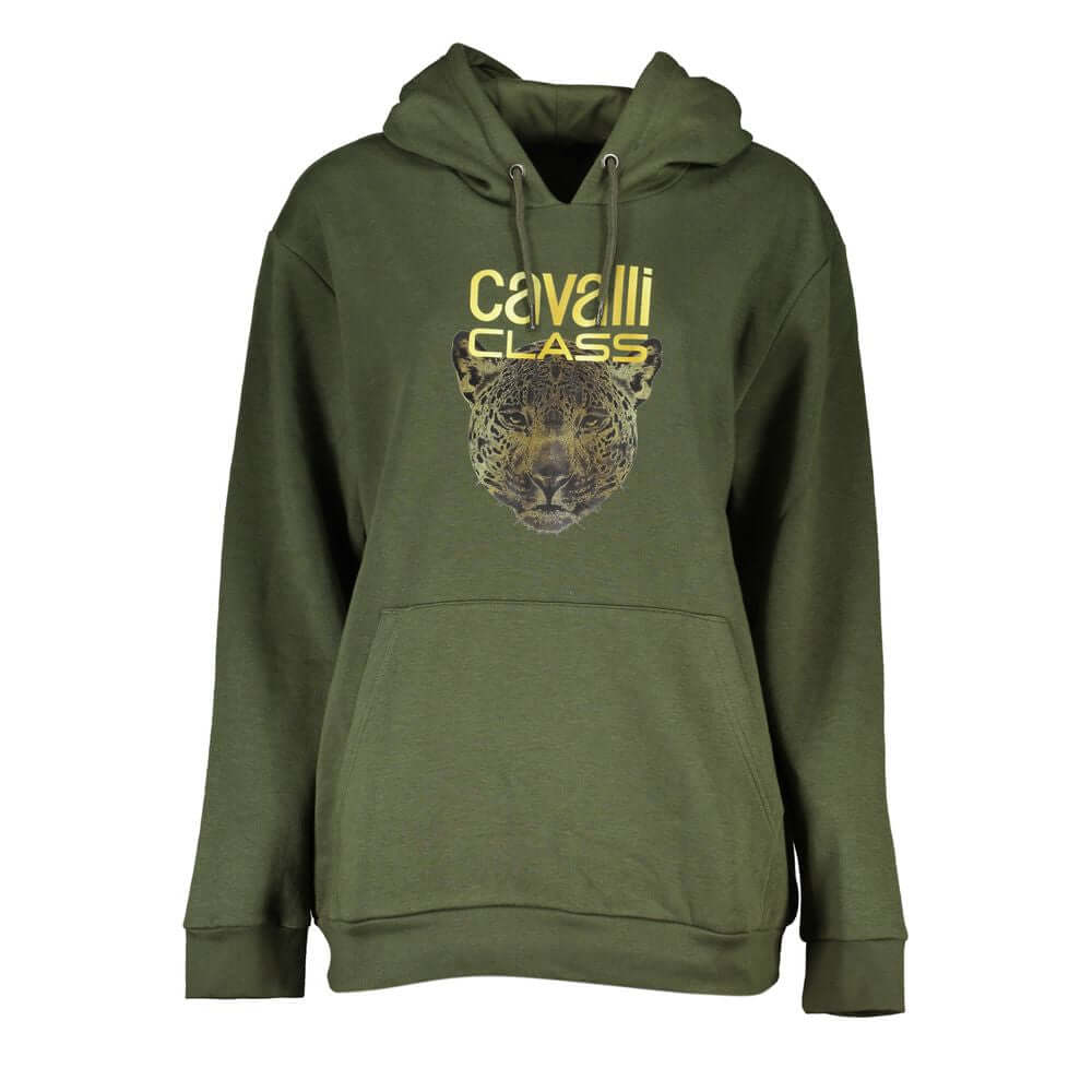 Dive into the essence of sophistication with this Cavalli Class sweatshirt, a statement of style converging on comfort. Crafted from a luxurious blend of cotton and polyester, this green sweatshirt flaunts a sleek design with a hood for an extra touch of elegance. Emblazoned with the iconic Cavalli Class logo and a captivating print, it’s a piece that redefines everyday chic. Perfect for a bold fashionista aiming to blend casual with luxury.