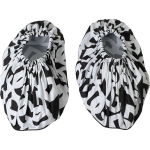 Dolce & Gabbana White Logo Print Nylon Slip On Flats Shoes