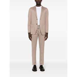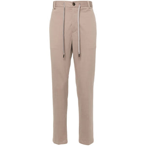 taupe cotton blend piqué weave logo-print drawstring slim cut low-rise drawstring waist rear elasticated waistband concealed fly and button fastening belt loops two diagonal pockets to the sides two rear welt pockets pressed crease straight hem Pique drawstring trousers Size and Fit - This piece fits true to size. We recommend you get your regular size. Model is 1,84m / 6ft 1in wearing size 48 (IT)