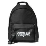 Comme des Fuckdown polyester backpack with front logo print, zip closure and external pocket, adjustable shoulder straps