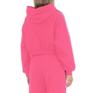 Step into audacious style with Comme Des Fuckdown’s short hoodie, exuding a rebellious charm with its striking chest logo and vibrant fuchsia side stripes. Made for those who dare to defy norms, this hoodie is crafted from premium cotton, offering both comfort and attitude in spades. Make a bold statement while enveloping yourself in the soft embrace of quality fabric.