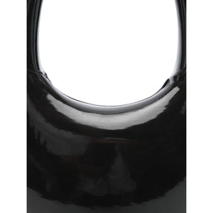 black open top embossed logo to the front single top handle Swipe shoulder bag Size and Fit - Depth 5 cm, Handle 16 cm, Height 13 cm, Width 17 cm