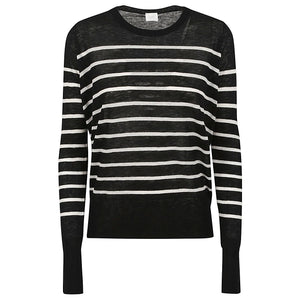 Crew neck sweater, long sleeves, ribbed hems, striped pattern and straight cut. Wool striped sweater Size and Fit - This piece fits true to size. We recommend you get your regular size. Model is 1,75m / 5ft 8in wearing size 36 (FR)