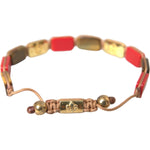 White CZ Diamonds, Red Coral, Brown Tiger Eye Flat Beads