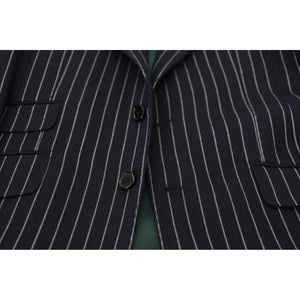 Dolce & Gabbana Dark Blue Stripe Wool Single Breasted Blazer