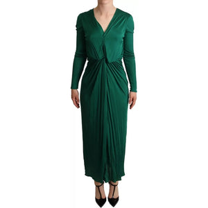 Dolce & Gabbana Dark Green Viscose Long Sleeve Midi Dress