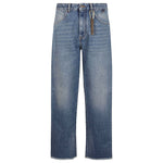 Blu, cotone, denim, effetto vissuto, passanti, design classico a cinque tasche, chiusura frontale con bottoni e zip, taglio straight e orlo dritto. Relaxed fit denim jeans Size and Fit - This piece fits true to size. We recommend you get your regular size. Model is 1,84m / 6ft 1in wearing size 32 (WAIST CM)