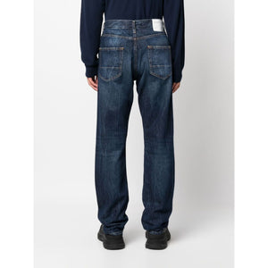 straight-leg stonewashed jeans from Department 5 featuring indigo blue, cotton, stonewashed, whiskering effect, classic five pockets, belt loops, front button and zip fastening, straight leg and straight hem. Straight leg denim jeans Size and Fit - This piece fits true to size. We recommend you get your regular size. Model is 1,84m / 6ft 1in wearing size 32 (WAIST CM)