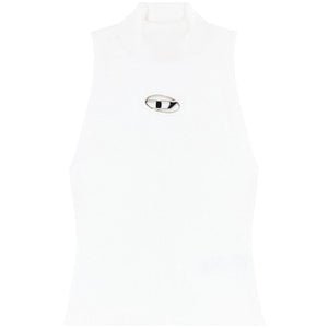 optical white ribbed knit silver-tone logo plaque high neck sleeveless straight hem M-Onervax tank top Size and Fit - This piece fits true to size. We recommend you get your regular size. Model is 1,75m / 5ft 8in wearing size S