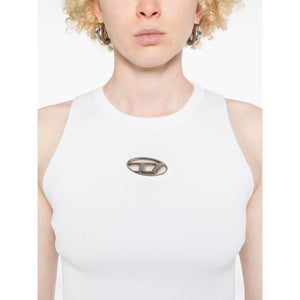 white crew neck sleeveless Oval D logo plaque Oval-D top Size and Fit - This piece fits true to size. We recommend you get your regular size. Model is 1,75m / 5ft 8in wearing size S