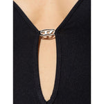Close-up of Diesel Underwear Black bodysuit with oval-D detail, adjustable spaghetti straps, and low back.