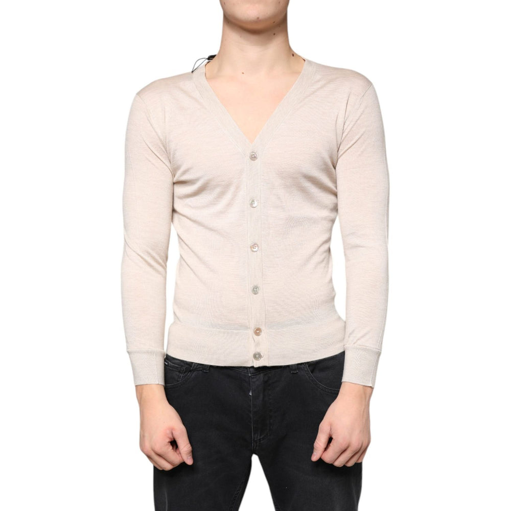 Dolce & Gabbana Beige Cashmere Button Down Cardigan Sweater