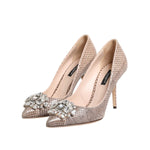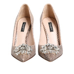 Dolce & Gabbana Beige Leather Crystal Embellished Pumps Shoes