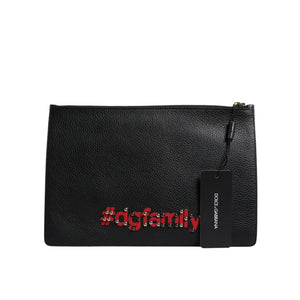 Dolce & Gabbana Black #DGFamily Embellished Leather Clutch Bag